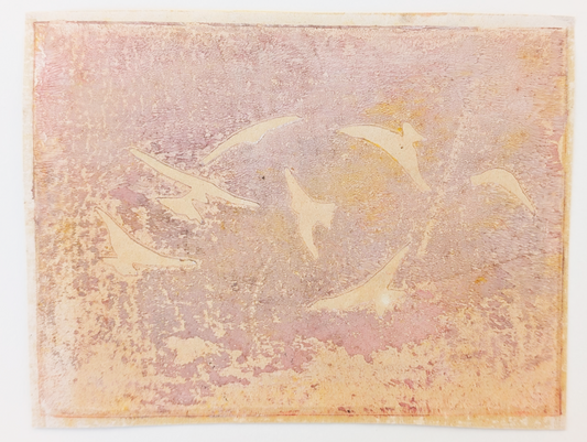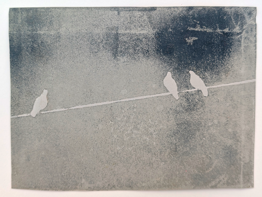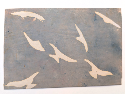 A collection of original lino prints inspired by circling gulls. Each lino print is unique and characterised by the patina achieved during the hand printing and rolling process. Ink is layered and removed in stages to create the perfect tone and dispersion of colour.