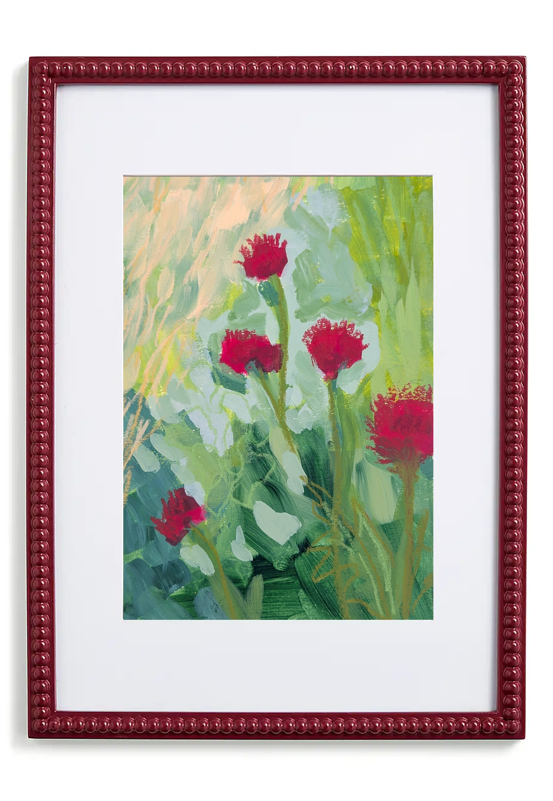 An original painting capturing the loose, laissez-faire quality of my garden in July, when everything is in peak bloom and the borders hum with the sound of foraging insects and heady fragrance wafts through the air. Pops of vibrant burgundy and sparkling lilac shimmer among lush greens. Romantic roses, spicy Salvia, fluffy Thalictrum, delicate Cosmos, towering Acanthus and aromatic Nepeta are all enjoying their moment in this mini series of works which was painted together as a whole from life on a sunny July afternoon.