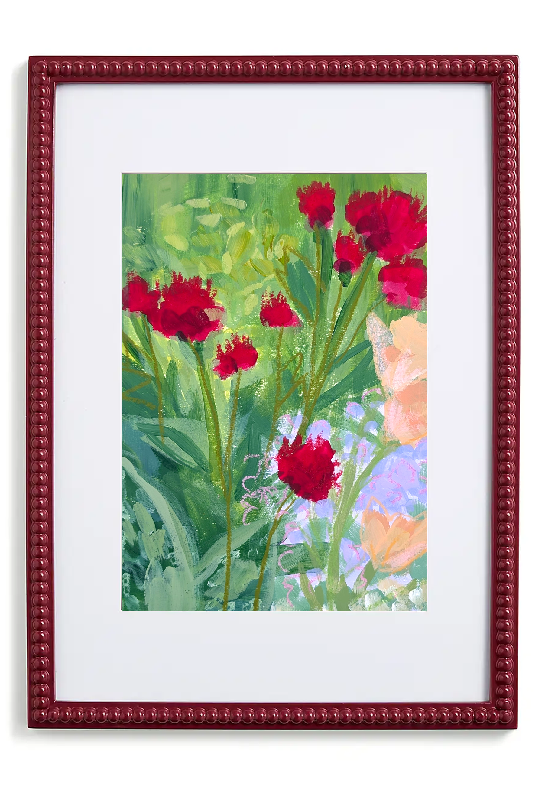 An original painting capturing the loose, laissez-faire quality of my garden in July, when everything is in peak bloom and the borders hum with the sound of foraging insects and heady fragrance wafts through the air. Pops of vibrant burgundy and sparkling lilac shimmer among lush greens. Romantic roses, spicy Salvia, fluffy Thalictrum, delicate Cosmos, towering Acanthus and aromatic Nepeta are all enjoying their moment in this mini series of works which was painted together as a whole from life on a sunny July afternoon.