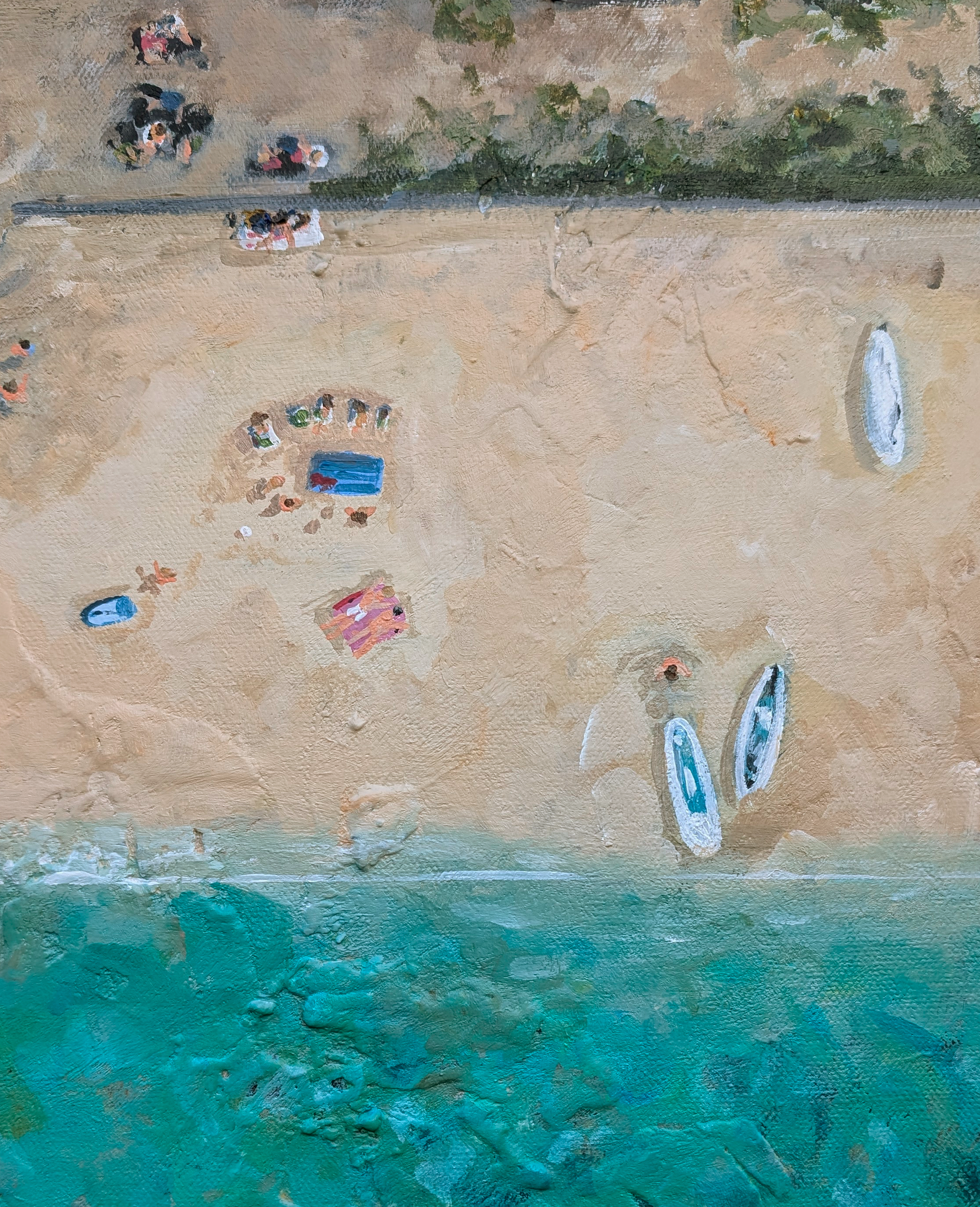 This piece captures the joy from one of my favourite holiday walks. Across the beach from Morfa Nefyn to Porthdinllaen, where we stop at the Tŷ Coch Inn for a cheeky beer and a plate of nachos whilst sat on the sand. The turquoise water glimmers beside the path, looking positively Mediterranean, fishing boats and watercraft bob gently in the bay, and laughter drifts on the air. After lunch, we carry on along the coastal path with the sea stretching out below, a little sunbathing before diving in for a swim off the lifeboat beach. Then it’s the slow wander back, sun-warmed, salt-skinned, and smiling all the way!